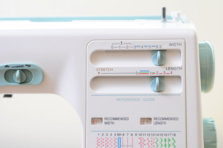 機械式的針距與針幅調整鈕,針幅調整亦可做為下針位置的左右微調,便於初學者控制車縫縫份寬度很有幫助。
